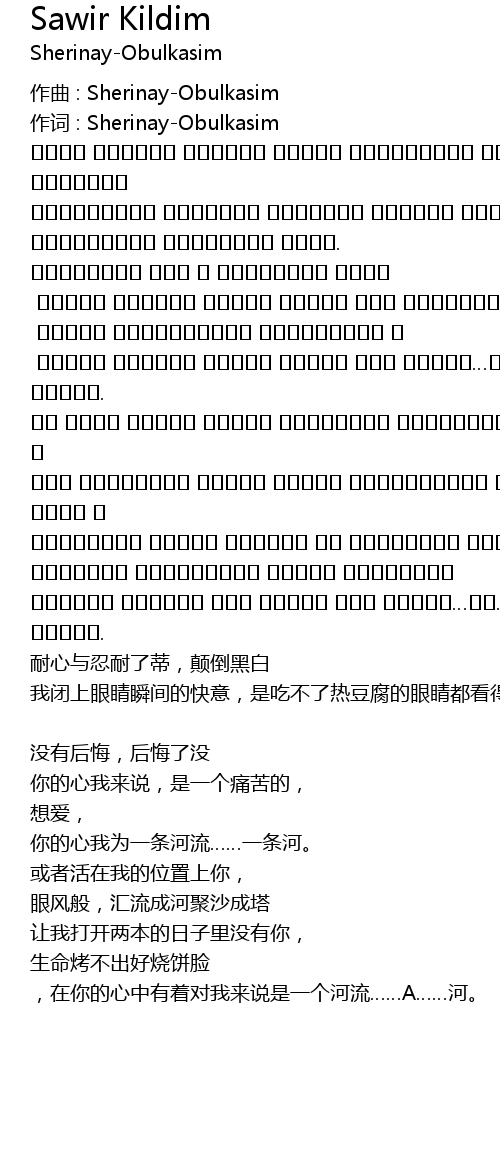 | ،سېنىڭ قەلبىڭ مەن ئۈچۈن بىر دەريا…ئا… دەريا. | |