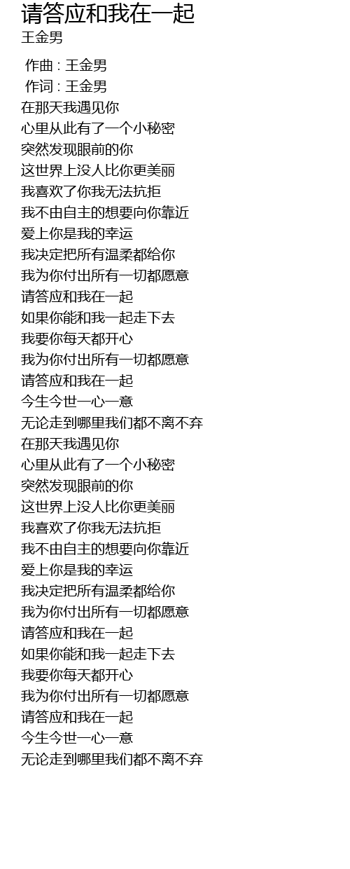 | [01:12.71] | qǐng dā yìng hé wǒ zài yì qǐ |
