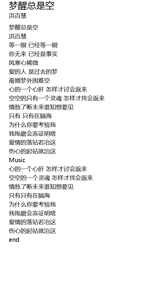 | [00:04.73] | mèng xǐng zǒng shì kōng |