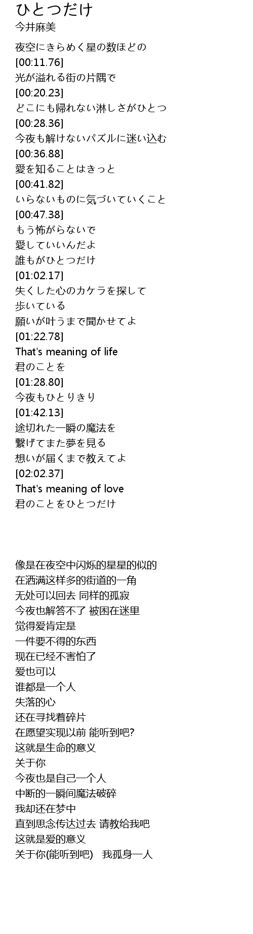 | [01:23.34] | That' s meaning of life |