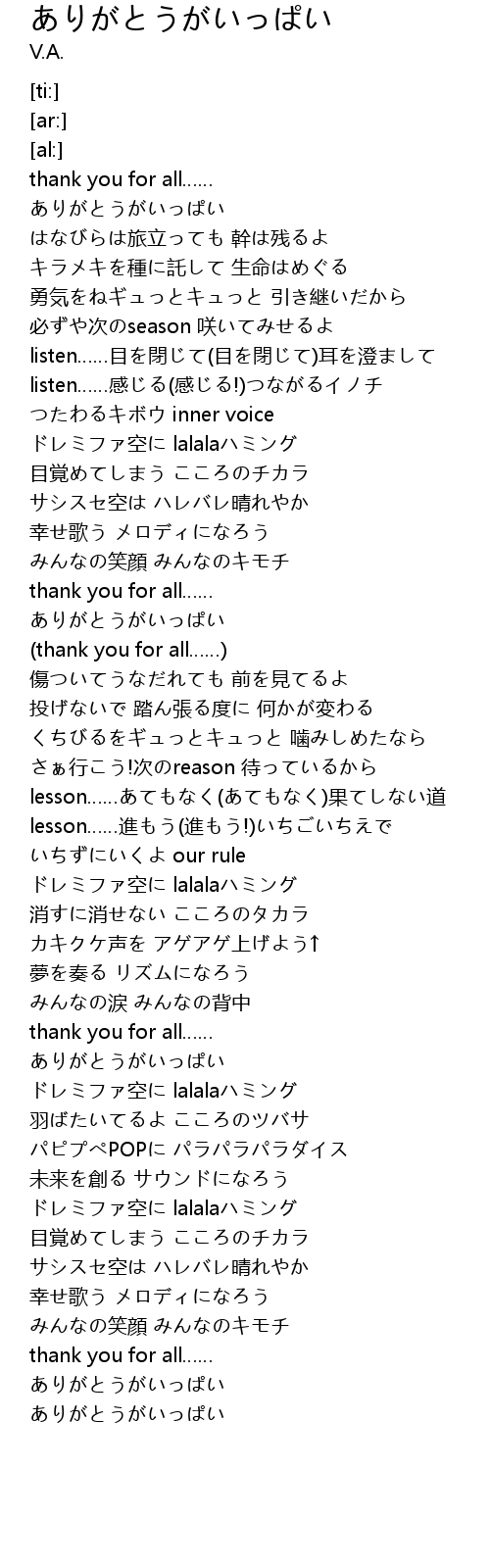 | [00:10.17] | ありがとうがいっぱい |