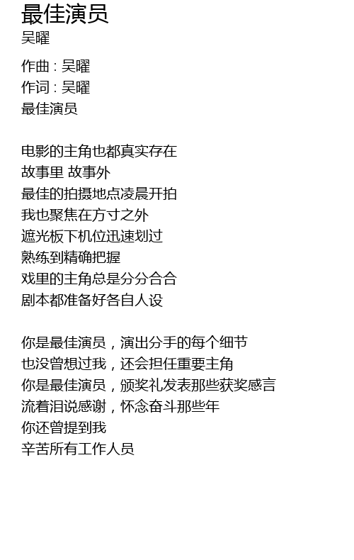 | nǐ shì zuì jiā yǎn yuán, yǎn chū fēn shǒu de měi gè xì jié | |