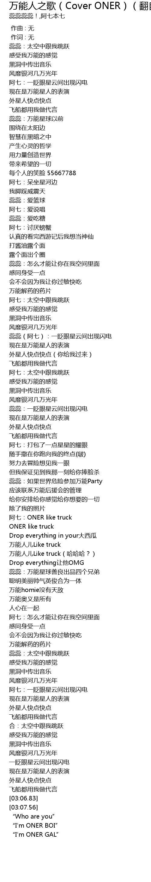 | [02:04.65] | 万能人儿Like truck(哈哈哈?) |