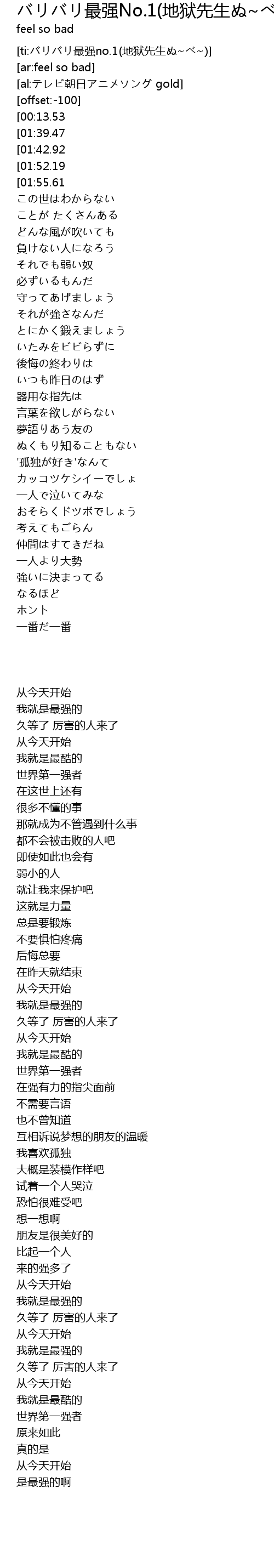 | [00:21.23][01:55.61][04:23.04] | バリバリ最強NO.1 |