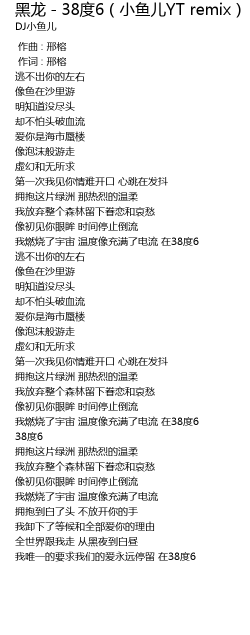 | [02:51.33] | 我唯一的要求我们的爱永远停留 在38度6 |