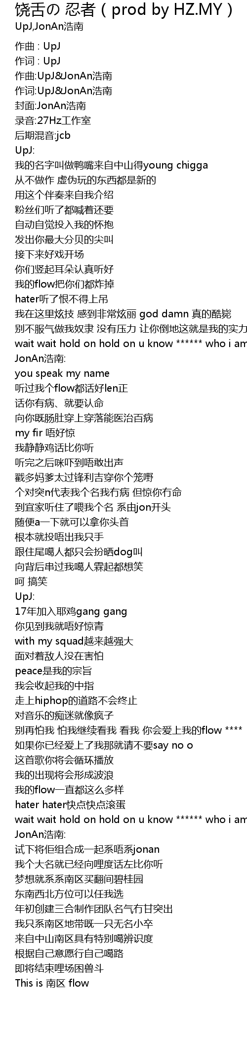 | [00:03] | 作词:UpJ&JonAn浩南 |