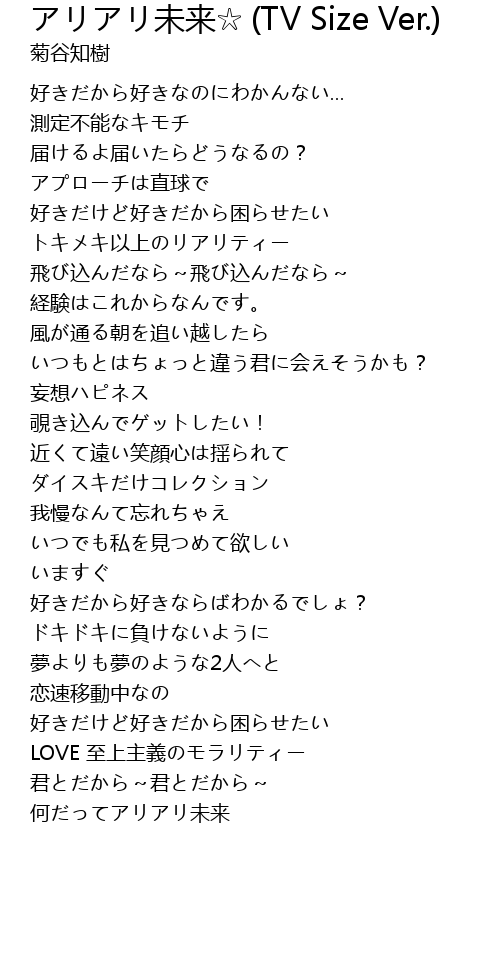 | Song | アリアリ未来☆ (TV Size Ver.) |