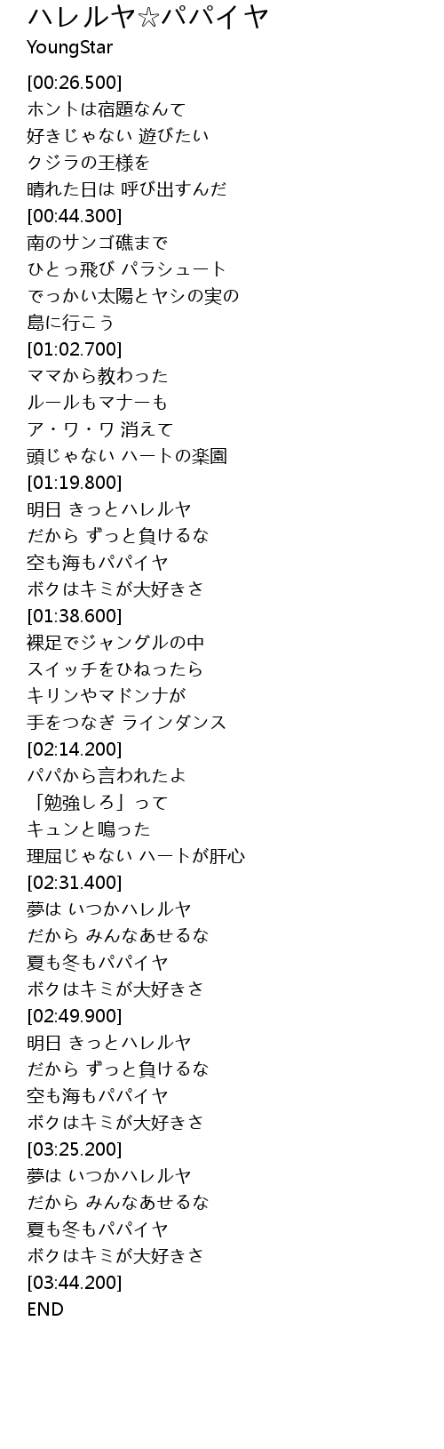 | [00:54.500] | でっかい太陽とヤシの実の |