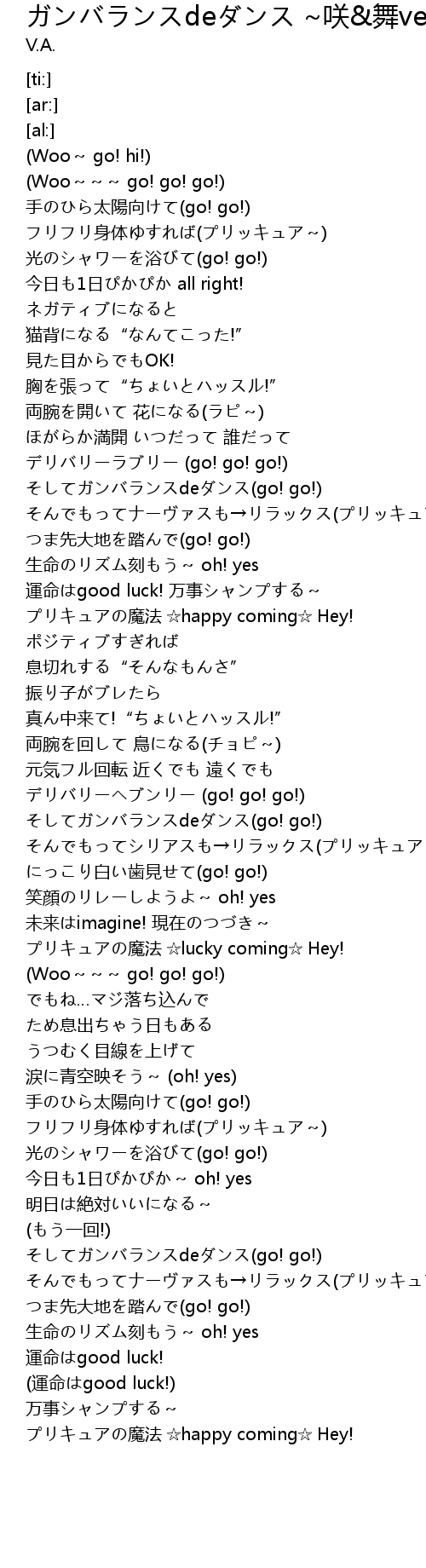 | [03:06.72] | フリフリ身体ゆすれば(プリッキュア~) |
