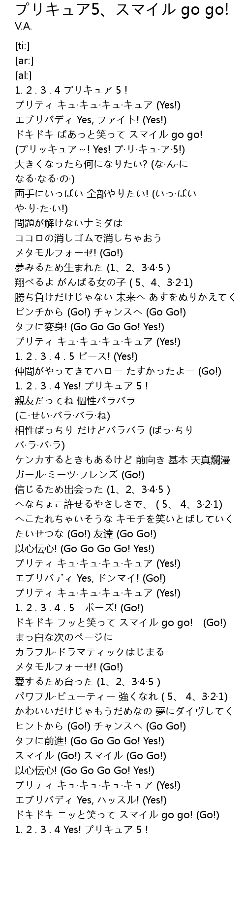 | [00:00.00] | 1. 2 . 3 . 4 プリキュア 5 ! |