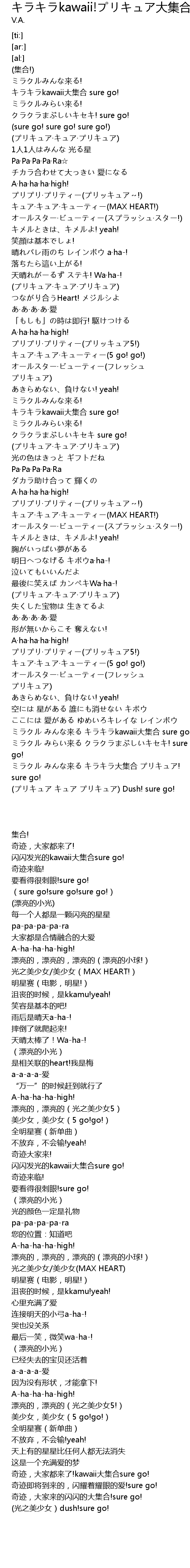 | [00:05.61] | キラキラkawaii大集合 sure go! |