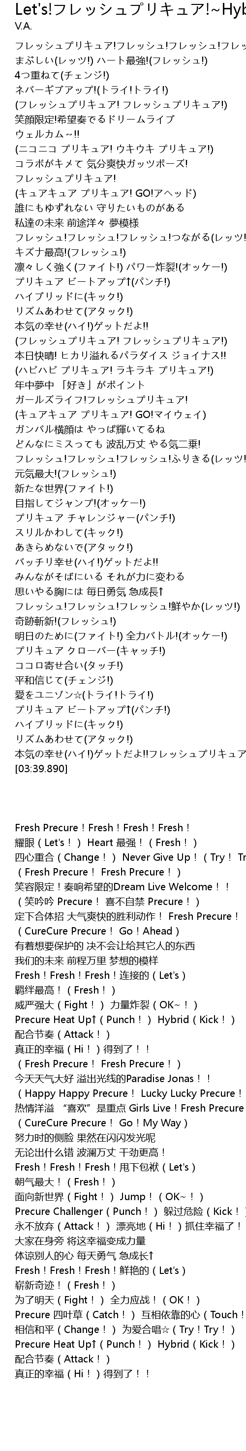| [03:23.340] | プリキュア ビートアップ↑(パンチ!) ハイブリッドに(キック!) |
