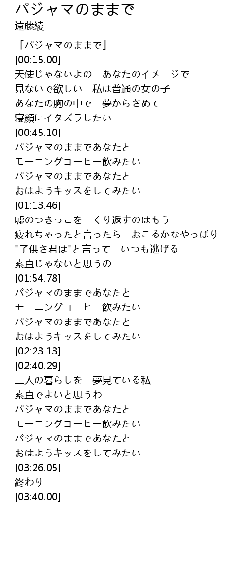| [03:04.37] | モーニングコーヒー飲みたい |