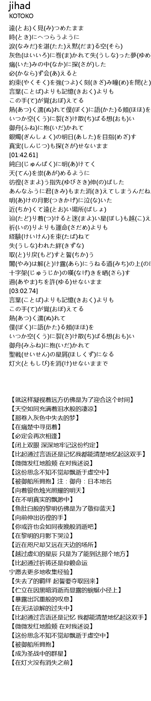 | [02:41.23] | 失(うしな)われた絆(きずな) 取(と)り戻(もど)すと誓(ちか)う |