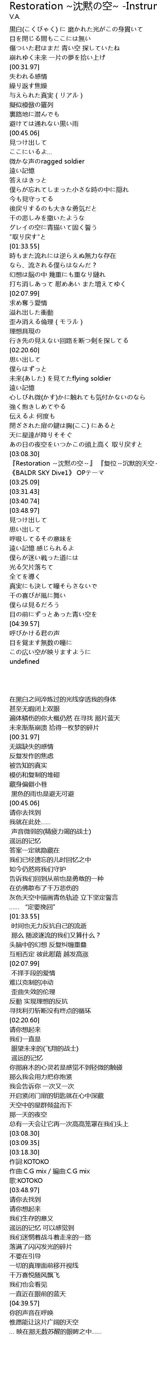 | [03:09.35] | 『Restoration ~沈黙の空~』 『复位~沉默的天空~』 |