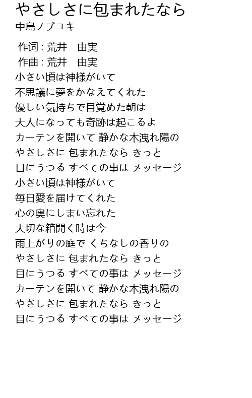 | [03:19.79] | やさしさに 包まれたなら きっと |