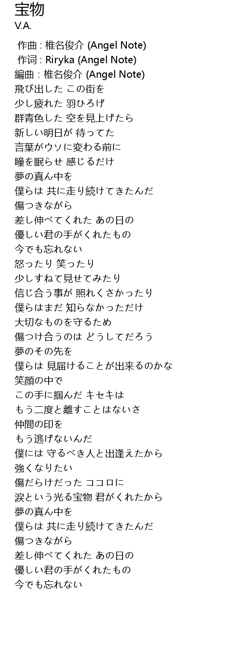 | [00:04.41] | 編曲:椎名俊介 (Angel Note) |