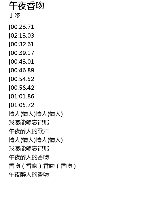 | [02:34.33][00:46.89] | 午夜醉人的香吻 |