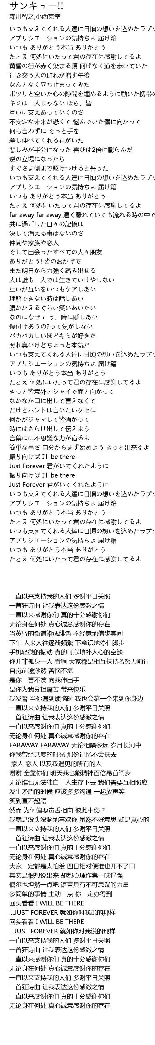 | [01:16.660] | いつも ありがとう本当 ありがとう |