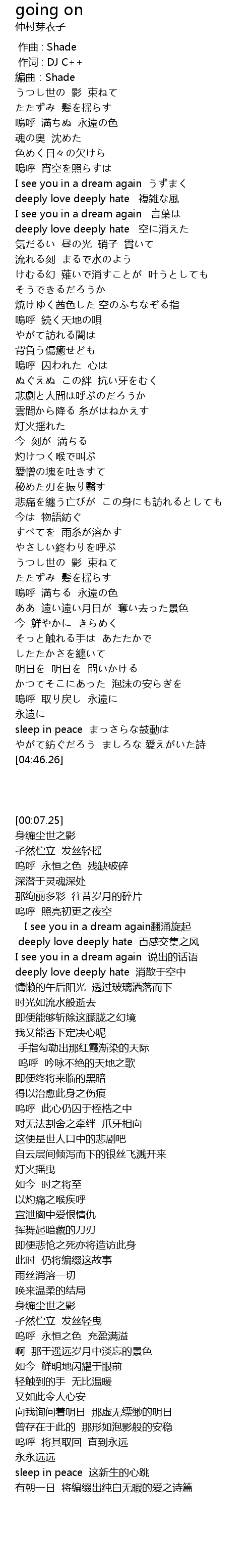 | [01:10.65] | deeply love deeply hate 複雑な風 |