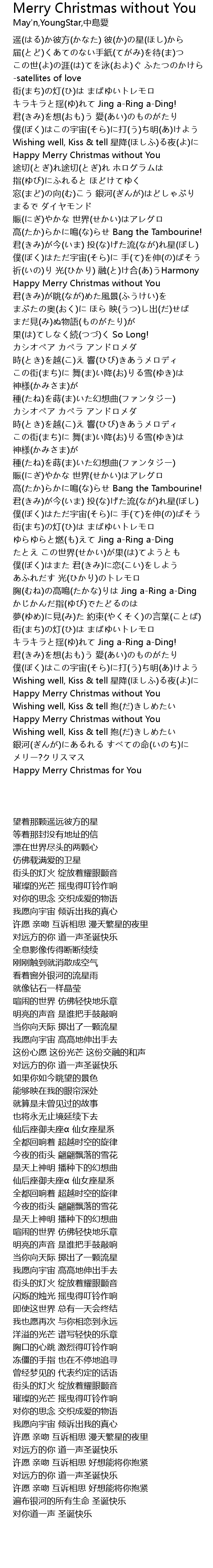 | [05:31.620] | 銀河(ぎんが)にあるれる すべての命(いのち)に メリー?クリスマス |