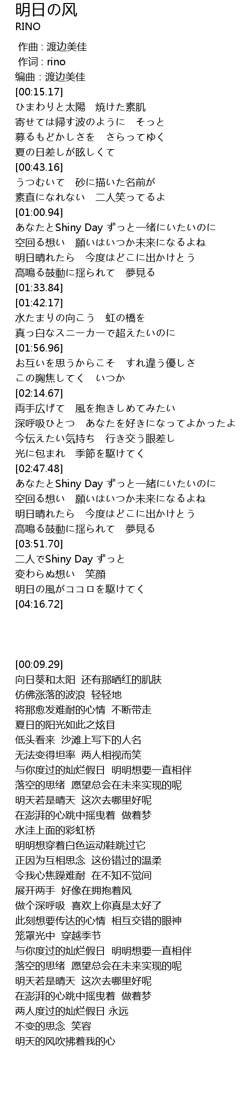 | [00:09.29] | 编曲:渡边美佳 |