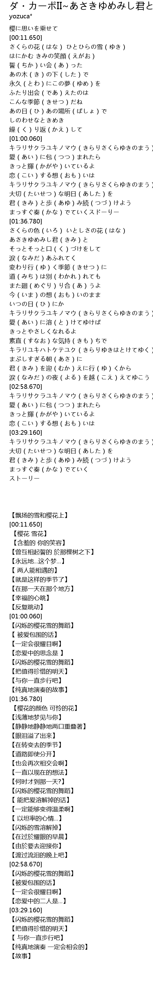 | [03:13.370] | キラリサクラユキノマウ(きらりさくらゆきのまう) |