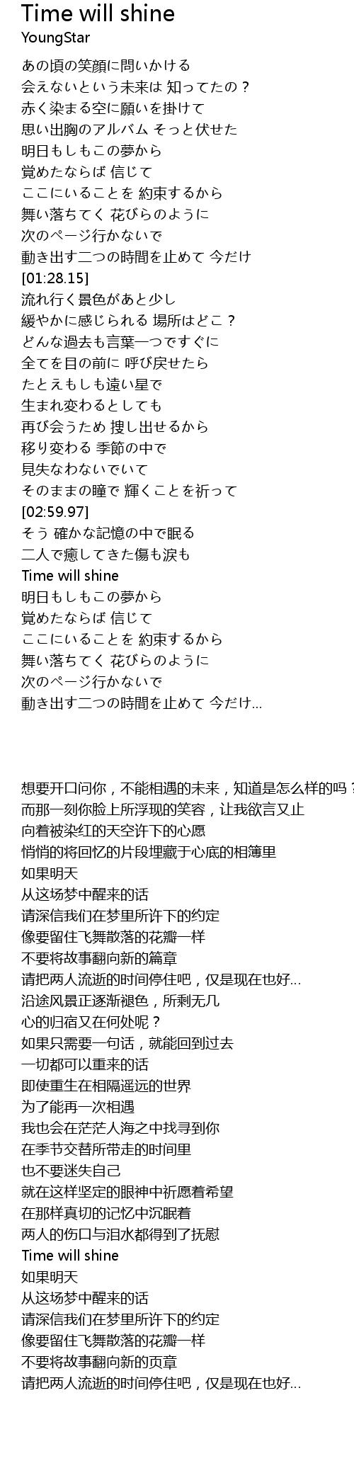 | [03:20.04] | Time will shine |
