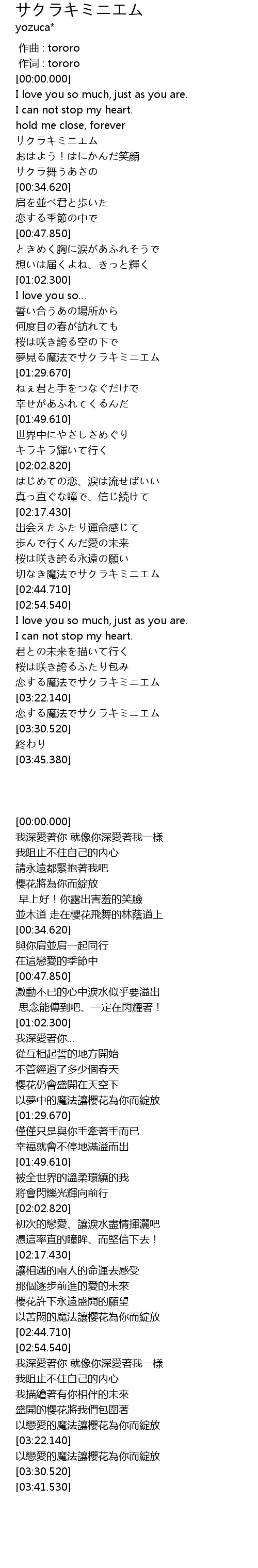 | [03:22.680] | 恋する魔法でサクラキミニエム |