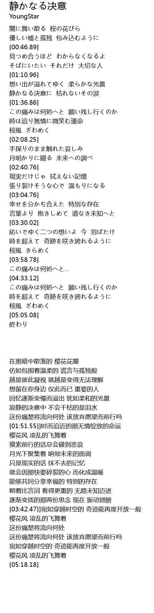 | [04:36.66] | この痛みは何処へと 願い残し行くのか |