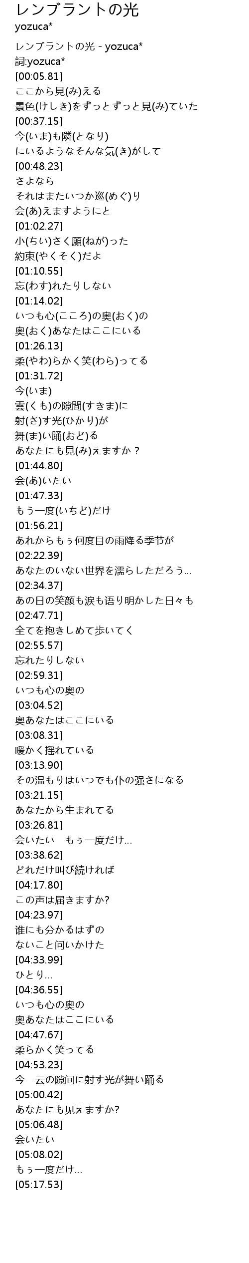| [00:02.02] | レンブラントの光 - yozuca* |