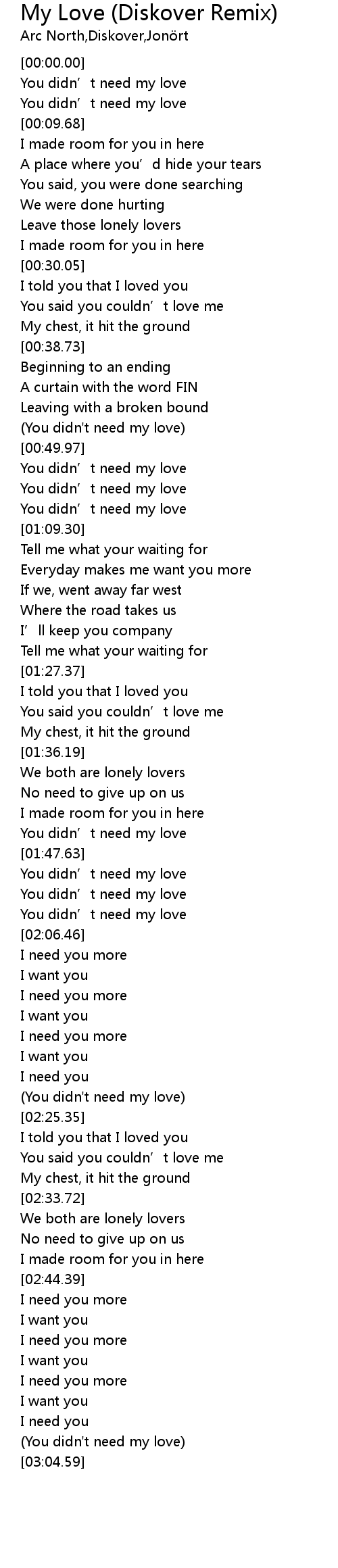 | [03:02.24] | (You didn't need my love) |