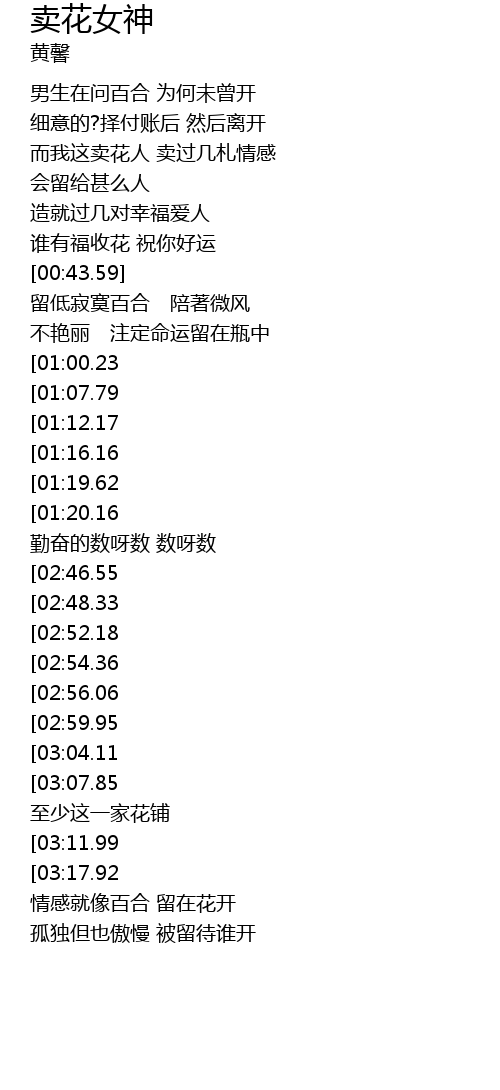| [02:36.14][01:12.17] | 约我这一个卖花女神 |
