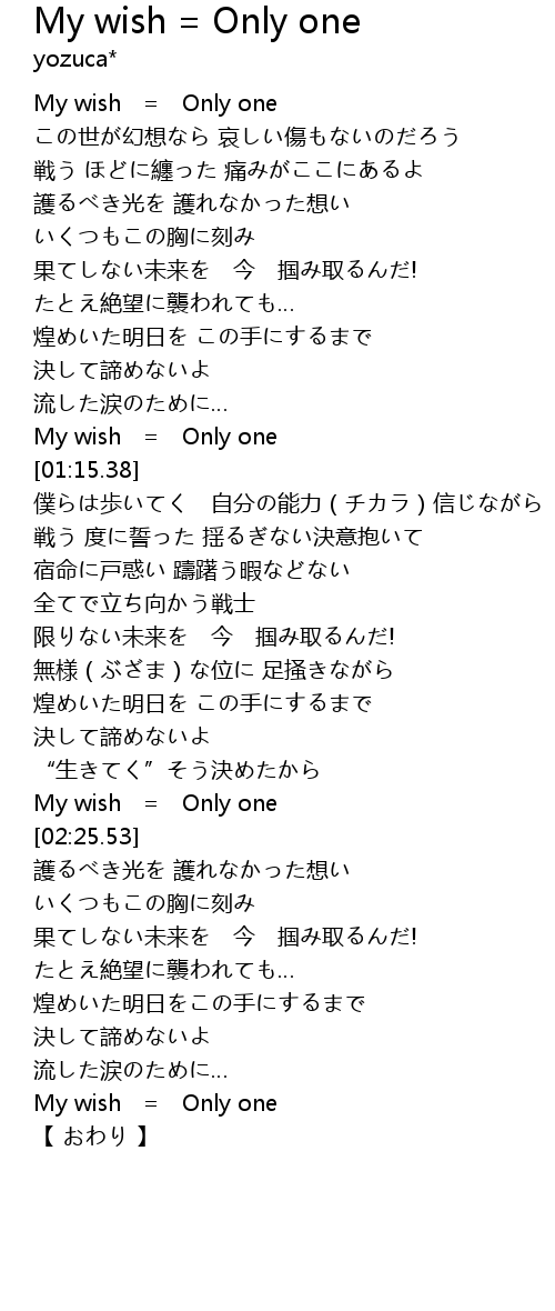 | [01:33.80] | 戦う 度に誓った 揺るぎない決意抱いて |