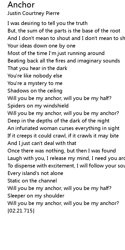 Will you be my anchor, will you be my anchor? |