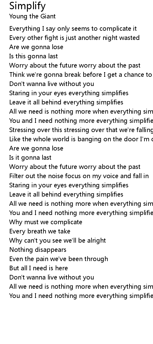 All we need is nothing more when everything simplifies |