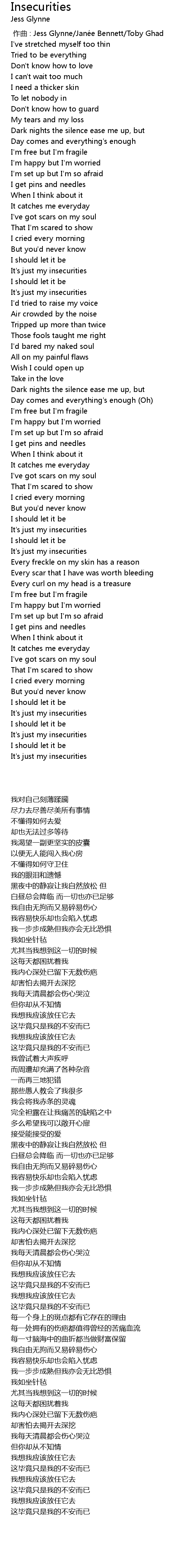 | Song | Insecurities |