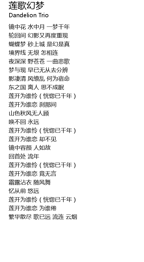 | [02:49.23] | lián kāi wèi shuí liàn jìng wú yán |