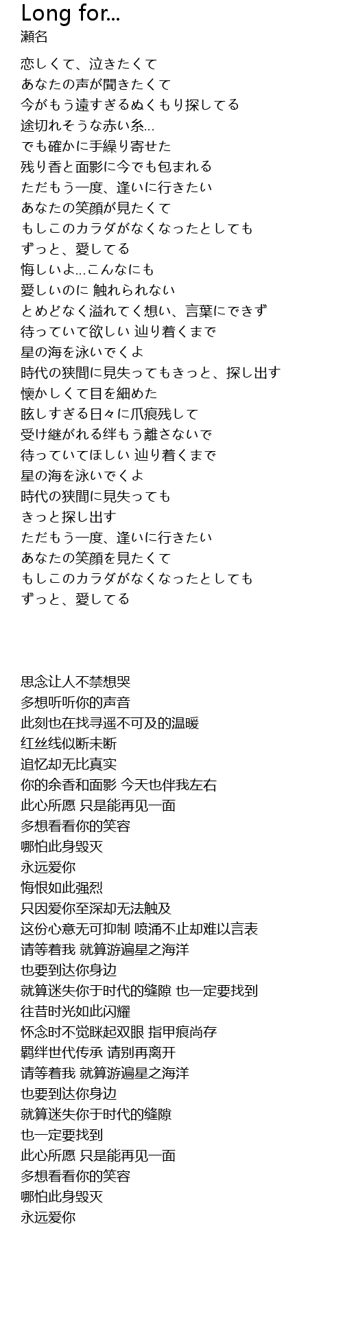 | [00:40.040] | 今がもう遠すぎるぬくもり探してる |