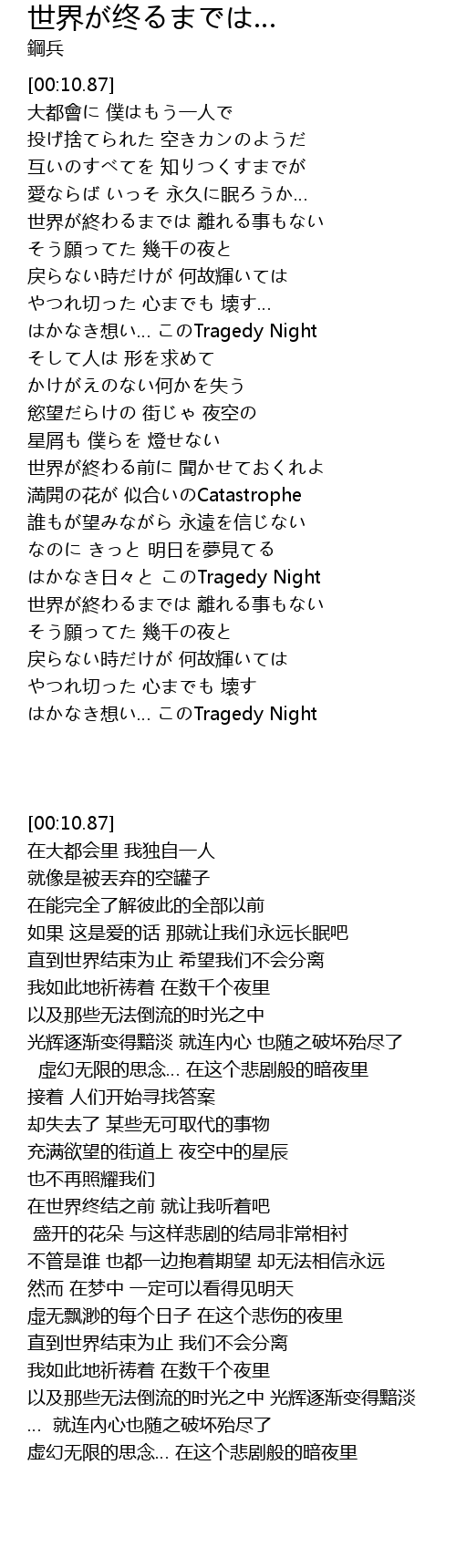 | [03:11.49] | 世界が終わる前に 聞かせておくれよ |