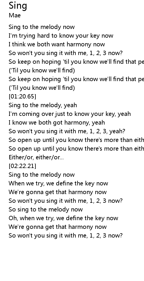 | [01:36.99] | So won't you sing it with me, 1, 2, 3, yeah? |