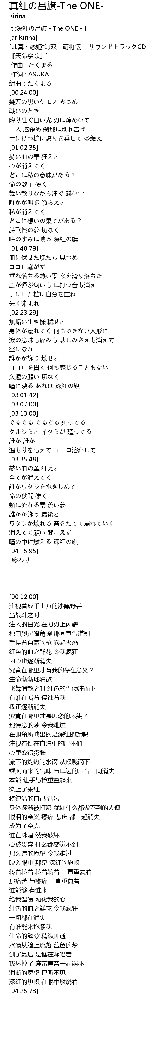 | [02:53.31] | 瞳に映る あれは 深紅の旗 |