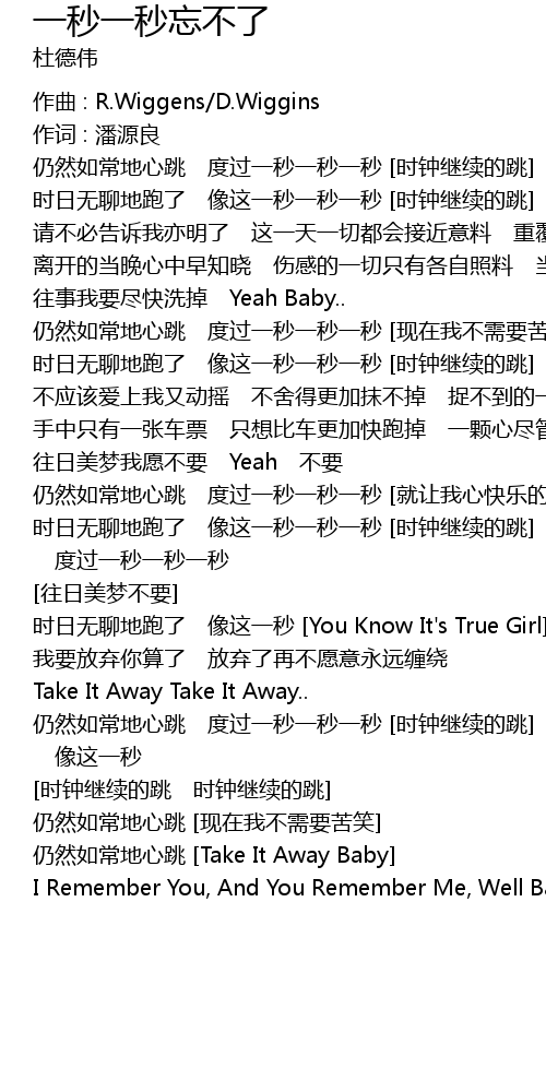 | reng ran ru chang di xin tiao Oh Yeah My Baby du guo yi miao yi miao yi miao wang ri mei meng bu yao | |