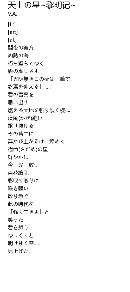 | [00:43.62] | 宿命(さだめ)の星 |