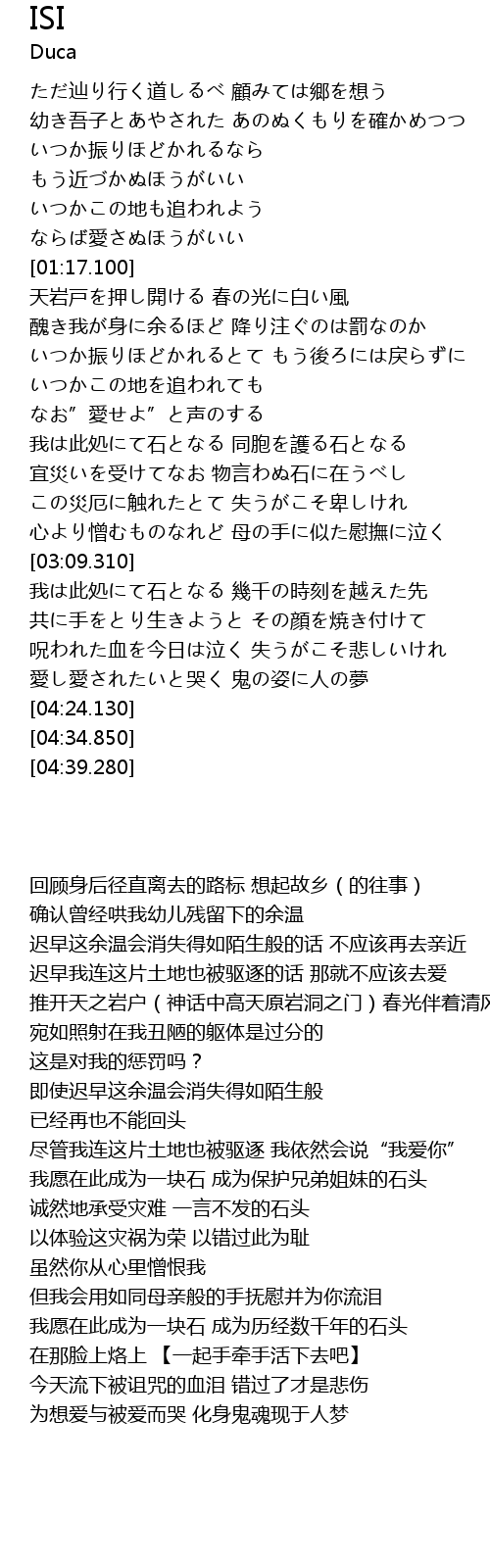 | [02:31.550] | 宜災いを受けてなお 物言わぬ石に在うべし |