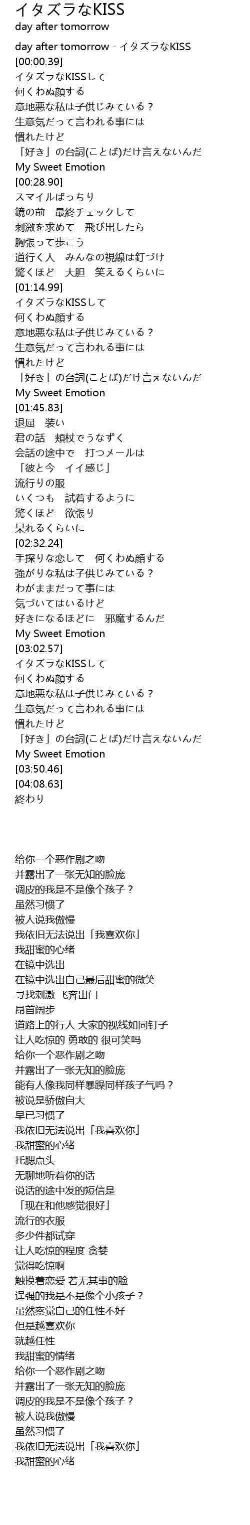 | [00:00.00] | day after tomorrow - イタズラなKISS |