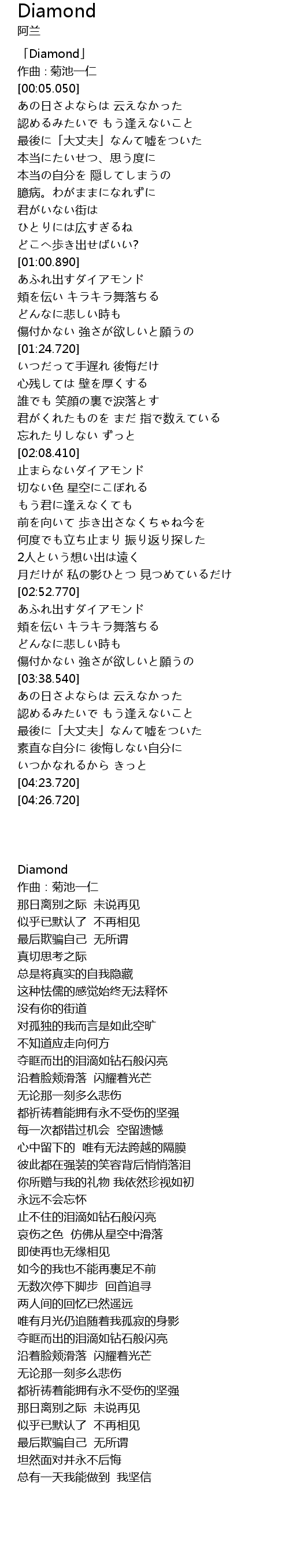 | [00:01.050] | 「Diamond」 |