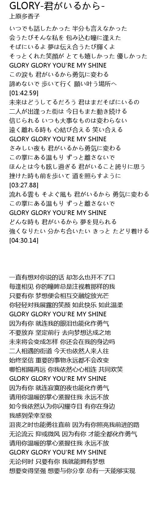 | [04:08.53] | GLORY GLORY YOU' RE MY SHINE |