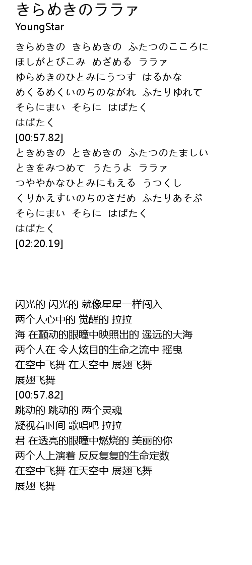 | [00:16.18] | ほしがとびこみ めざめる ララァ |