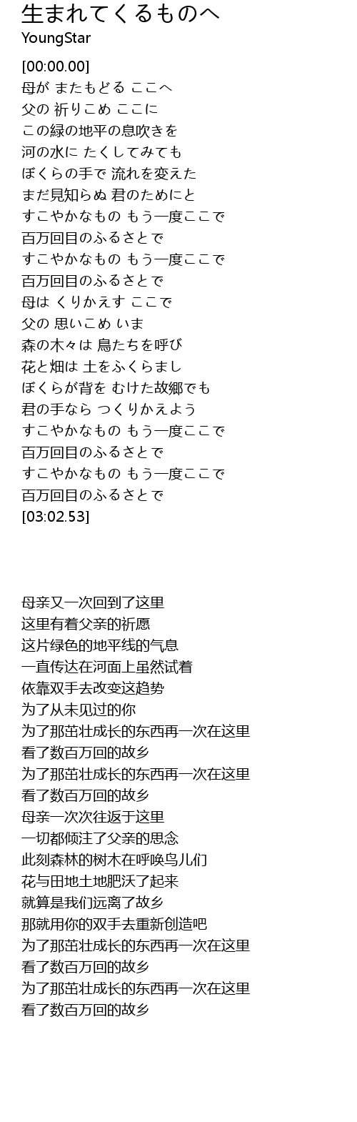 | [02:53.92] | 百万回目のふるさとで |